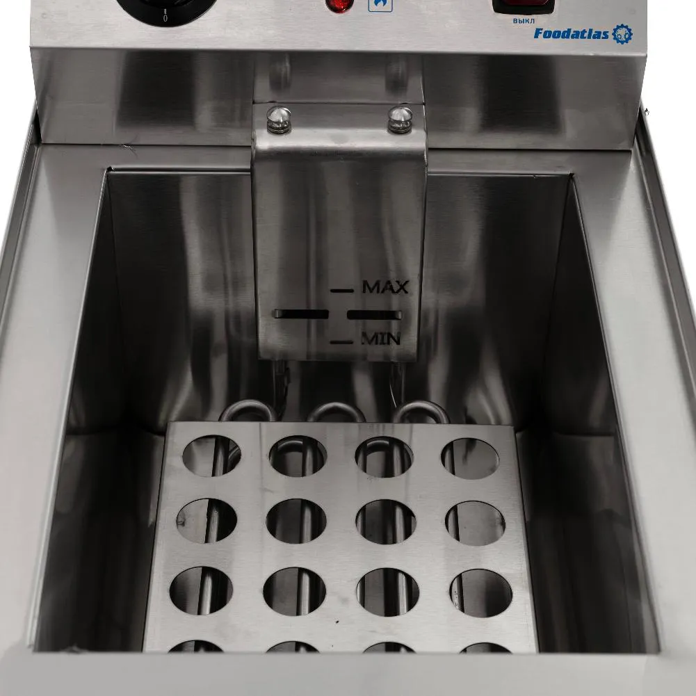 – это профессиональное оборудование для жарки во фритюре, идеально подходящее для кафе, ресторанов, фаст-фудов и столовых. Объем чаши 13 литров позволяет одновременно готовить большие порции, обеспечивая высокую производительность.Ключевые преимущества: